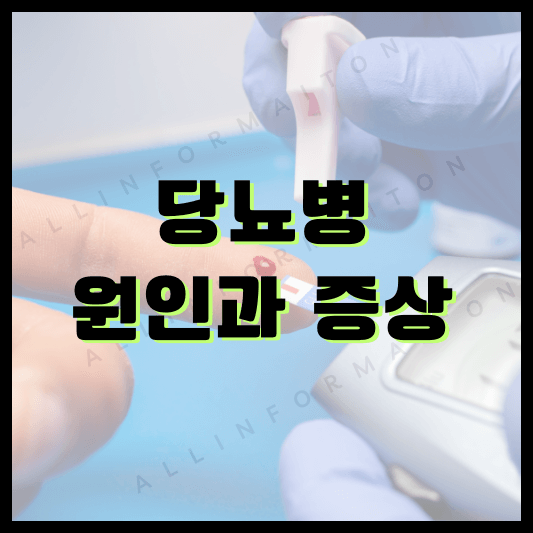 당뇨병의 발생에는 가족력, 고령, 비만, 스트레스, 임신, 감염, 약물(스테로이드제, 면역억제제, 이뇨제) 등이 있습니다. 최근 당뇨병이 급증하는 이유는 유전적인 원인보다는 과도한 음식물 섭취와 운동량 감소로 인한 비만 증가로 당뇨병 환자가 늘고 있습니다. 또한 단것을 많이 먹는다고 당뇨병이 생기지는 않지만 단것을 많이 먹으면 체중이 늘어날 수 있으며 비만증이 생기면 당뇨병이 생길 위험성이 증가합니다. 당뇨병은 제1형 당뇨병과 제2형 당뇨병으로 구분이 되는데 제1형 당뇨병은 인슐린을 생산하지 못하는 것이 원인이며, 주로 어린이나 청소년에게서 발생합니다. 2형 당뇨병은 인슐린 자체의 분비는 정상보다 많으나 인슐린 저항성이 증가하여 발생하며, 성인에게서 주로 발생합니다.